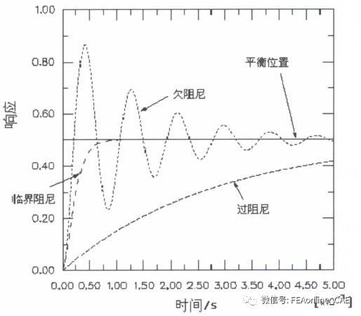 当结构处于临界阻尼即时,施加一个扰动后,结构不会振荡,而是尽可能迅速的恢复到它的初始静止构型,如下图所示。