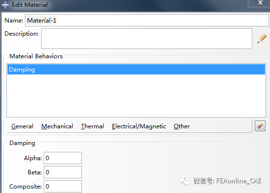 a) 在材料属性中定义该材料对应的复合阻尼,如下图所示: