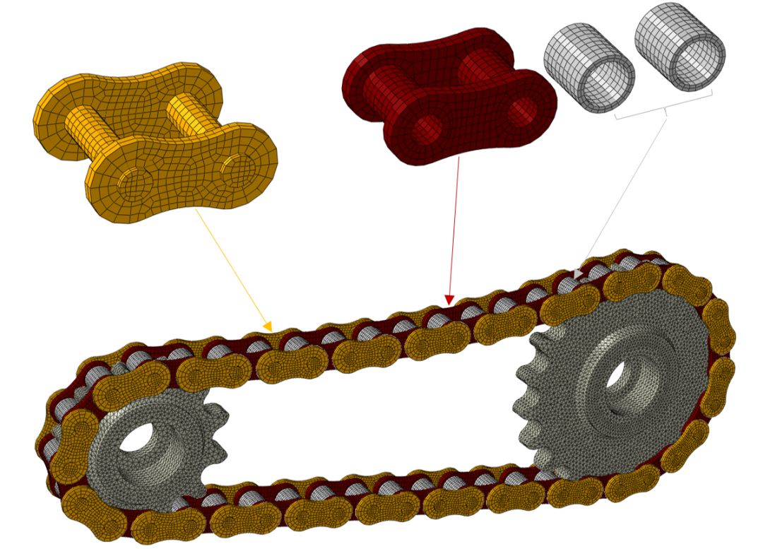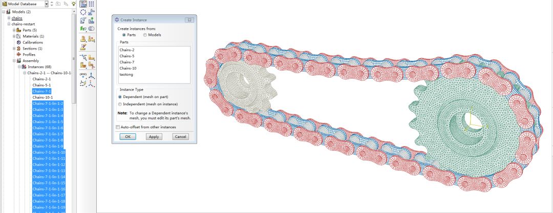 进行传动链条的 有限元 分析时,可以利用Abaqus中的非独立实体(mesh on part )对重复出现的Part进行装配,从而节省网格划分的时间。