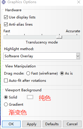 设置路径:View - Graphics Options