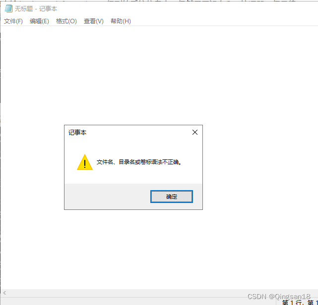 在运行Abaqus verification的时候,打开了一个记事本程序,并显示文件名、目录名或卷标语法不正确。