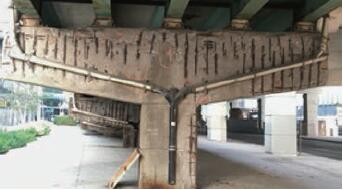 (a) 锈蚀严重的钢筋混凝土桥墩