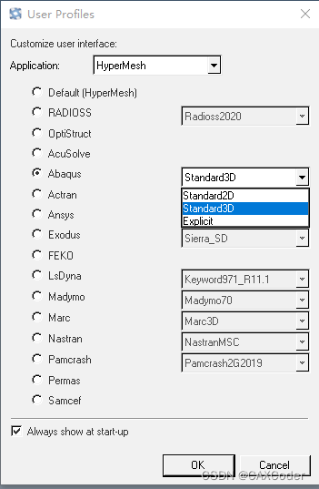 在User Profiles中修改求解器 类 型,否则无法更改单元类型为EC3D8R。