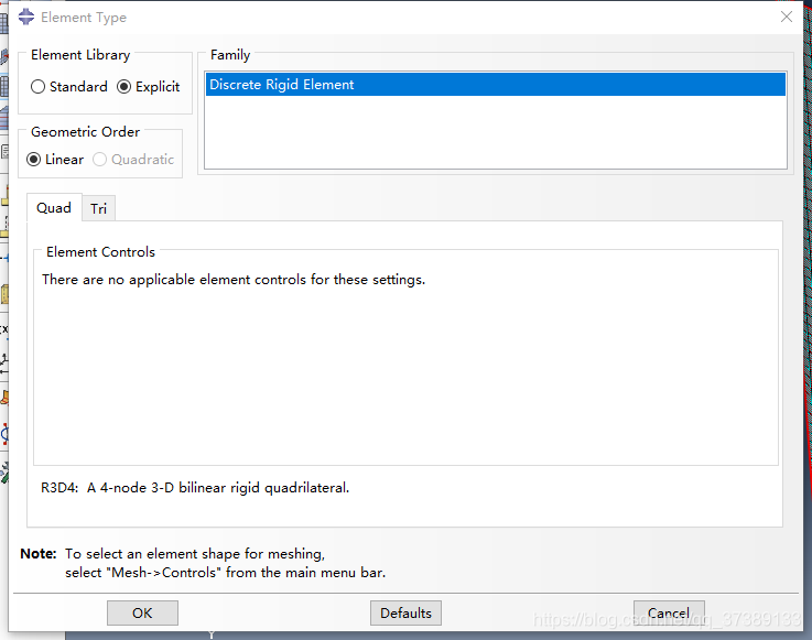 建立mesh,每个部件都要建立。在element type 中选择Explicit
