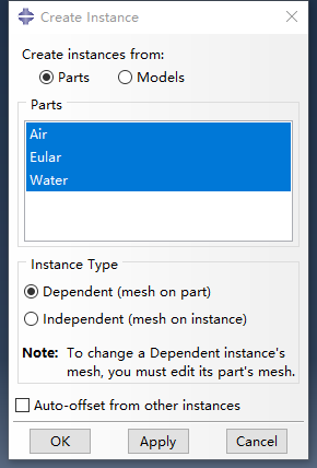 建立三个Parts 分别是 Eular part (Eulerain),Water part(Discrete rigid) , Air part(Discrete rigid)