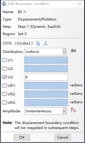 添加 边界 ,边界部分主要是给欧体添加的,下图限制的是Z方向的位移。