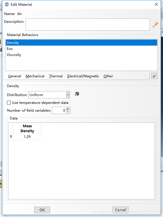 Air Density 1.29kg/m^3 , Eos Us-Up (342 0 0) , Viscosity 1E-007Pa.s (气体的定义一直是有存在疑问,希望看到的人能有所解答)