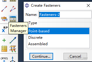 定义完点后就利用create fasteners,选择point-based, 选取刚才创建好的点阵列,然后定义连接的属性,如下图