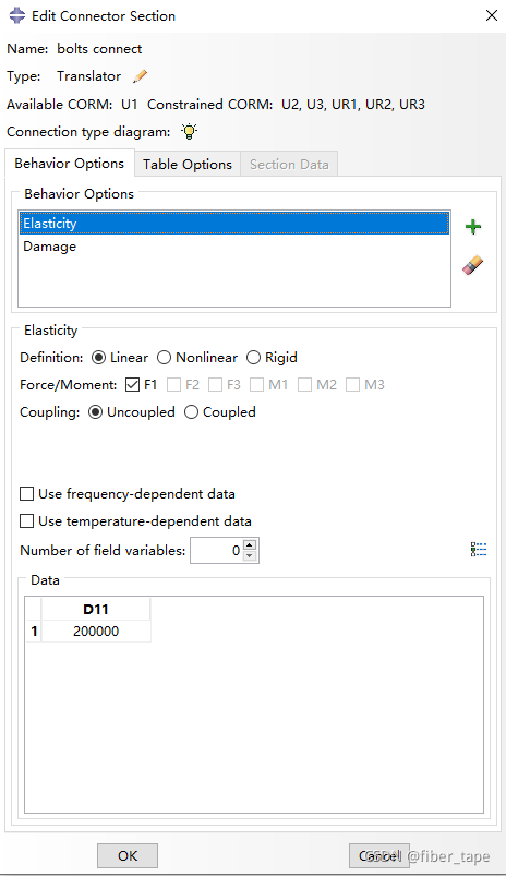 定义connector section时, 类 型选择translator,相当于只有1方向可以动,定义弹性模量以及破坏准则。