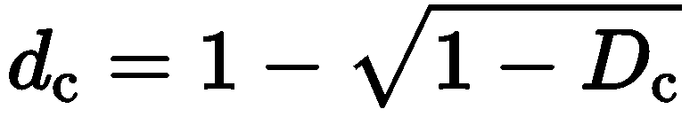 对于规范混凝土本构,特别需要注意的是对结构进行弹塑性分析时,规范中的“损伤演化参数”Dc与ABAQUS中的“损伤因子”dc并不是一个概念,Dc为应力应变曲线上的割线损伤,而dc为卸载刚度损伤,因而在根据规范中的本构模型计算输入ABAQUS塑性损伤参数的时候,要进行相应的转换。