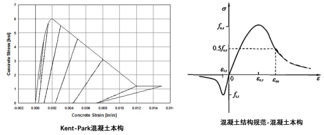 对于混凝土本构的定义,可采用Kent-Park混凝土本构、规范混凝土本构(常用)等混凝土本构对混凝土本构进行定义。