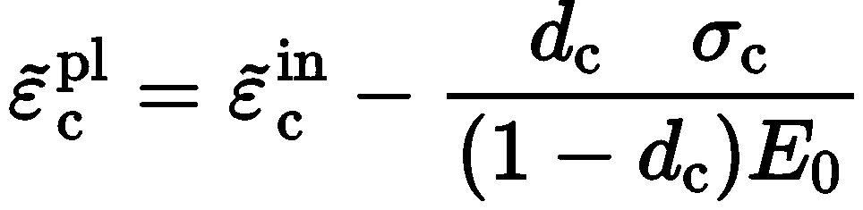 应变数据以非弹性应变的形式给出,并以代替塑性应变出现。将压缩的非弹性应变定义成总应变减去响应未损伤材料的弹性应变。Abaqus使用下面的关系自动将非弹性应变值转换成塑性应变值: