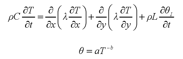 由于冻土路基会存在冻结和融化过程,这就会伴随着相变热的产生,因此需要在传统温度控制方程中额外考虑相变热的的影响。