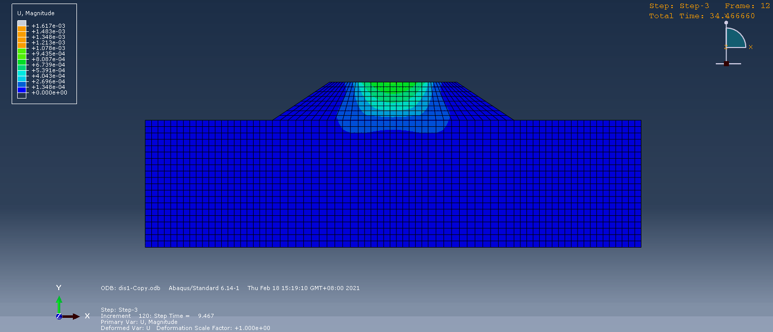 结合温度场分析和水分场分析可以获得路基的变形结果。