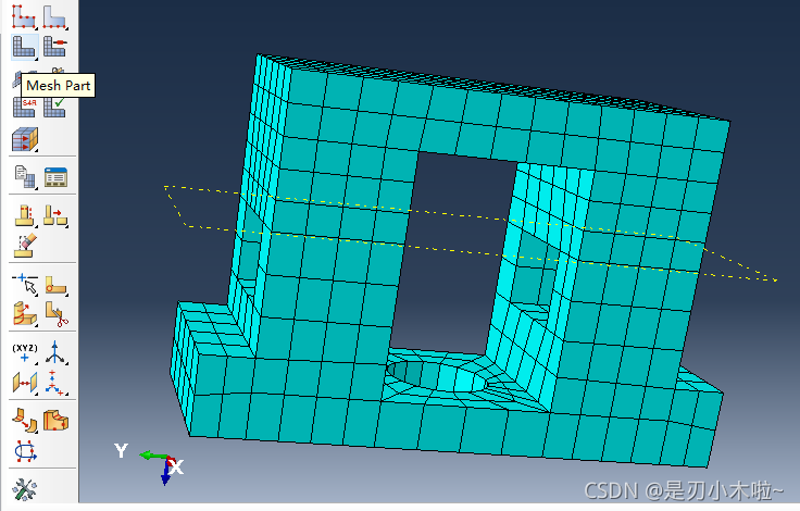 下载后,在Abaqus中导入sk2.cae文件,进入mesh中,将其 网格划分 擦除: