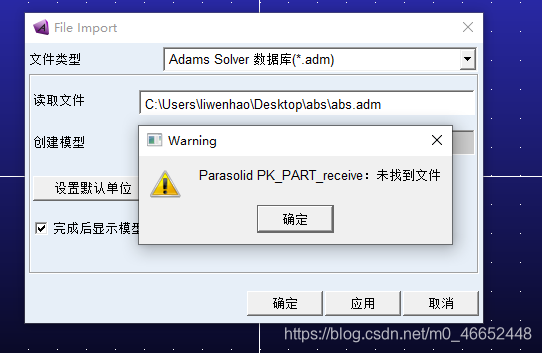 生成的是Adams可以识别的数据库,选择.adm通过Adams打开。