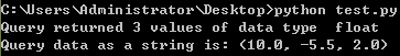 print "Query returned %i values of data type %s" % (data_length, data_type)