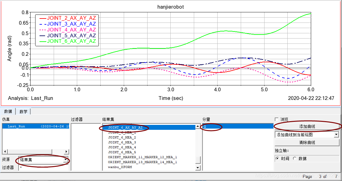 (1)将刚刚测量的各关节旋转角曲线添加在同一坐标系中;