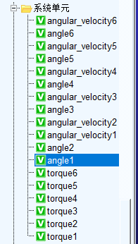 类 似地,建立好6个角度变量和角度测量的关联,6个角速度变量和角速度测量的关联、以及6个关节力矩的关联。至此,adams里的基本工作我们就完成了,没有的问题的话我们就可以建立联合仿真了。