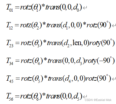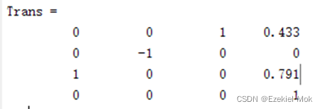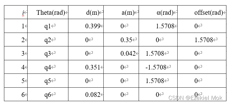 程序反馈显示出的机器人DH参数。
