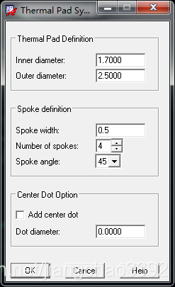 Thermal Relief :通常比Regular Pad 大20mil ,如果Regular Pad 的尺寸小于40mil ,根据需要适当减小。