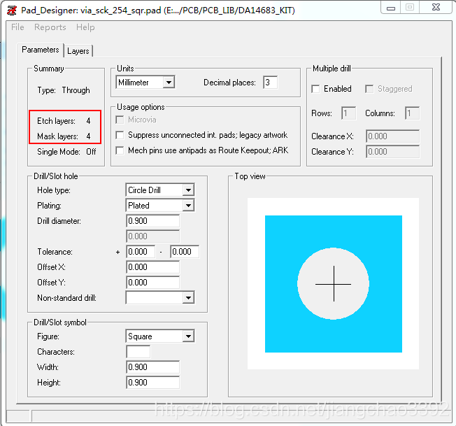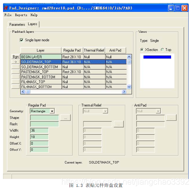 如果制作的是表贴元件的焊盘将Single layer mode 复选框勾上。需要填写的参数有: