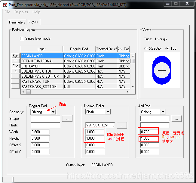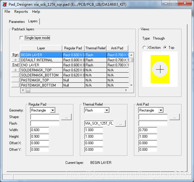 BEGINLAYER 层的 Regular Pad, Thermal Relief, Anti Pad;