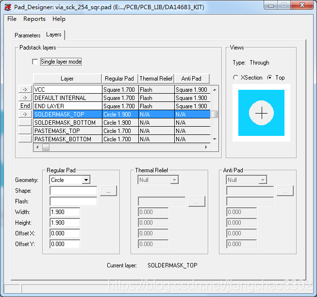 ENDLAYER 层的Regular Pad,Thermal Relief,Anti Pad;