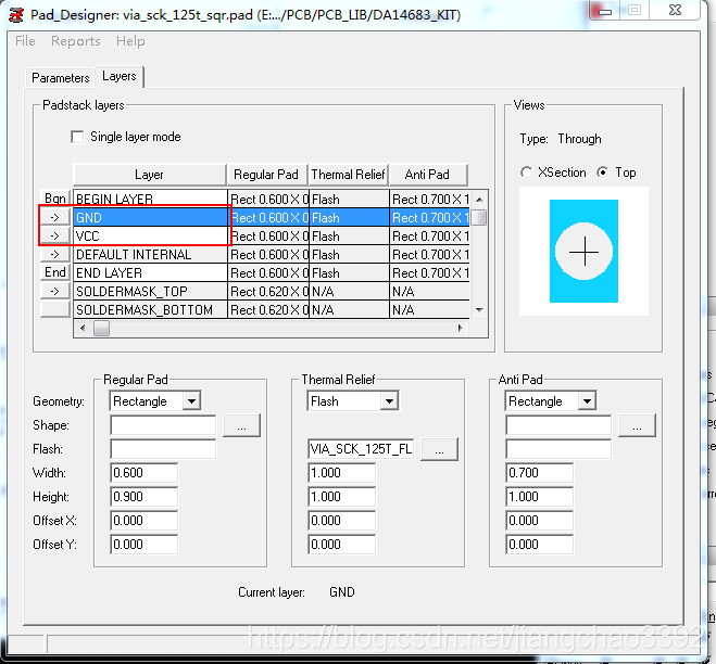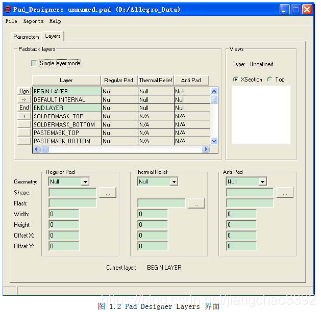 BEGINLAYER 层的Regular Pad,Thermal Relief,Anti Pad;
