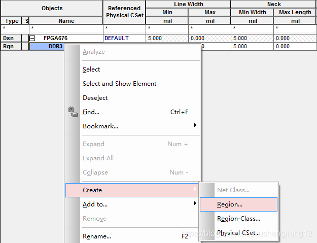 (1)打开约束管理器Constraint Manager→Physical→Region→ALL Layers,