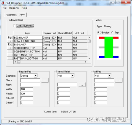 勾選Single layer mode,則pad為單面孔,比如 SMD