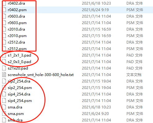 1.将需要用到的PCB封装库和焊盘库准备好,如下图,一般是将.dra .psm .pad文件都放到同一个文件夹A下面
