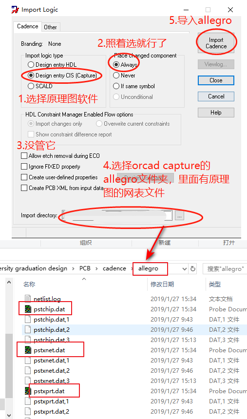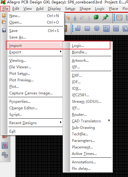 点击File-Import-Logic…,然后按照下图进行设置,选择原理图软件,找到allegro文件夹,将网表导入allegro即可