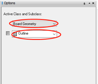先确认Options下的Class和Subclass分别为Board Geometry和 Outline