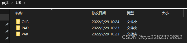 OLB里面放画原理图时会用到的各种元器件符号,文件后缀是.OLB,第二个放焊盘文件,第三个放封装文件。小白一开始看到这么多文件夹肯定就懵了,不要慌,这些暂时记不住也没关系,先大致有个印象,我们在使用软件时遇到让我们保存文件的时候再回头看看这里,看看到底应该放在哪个文件夹里面,放错了后面可以移动。