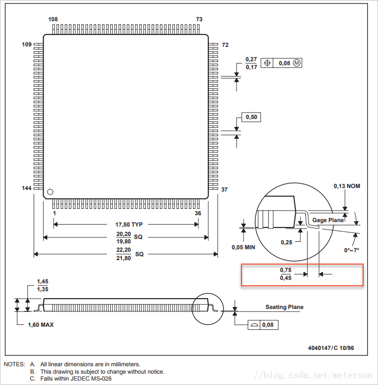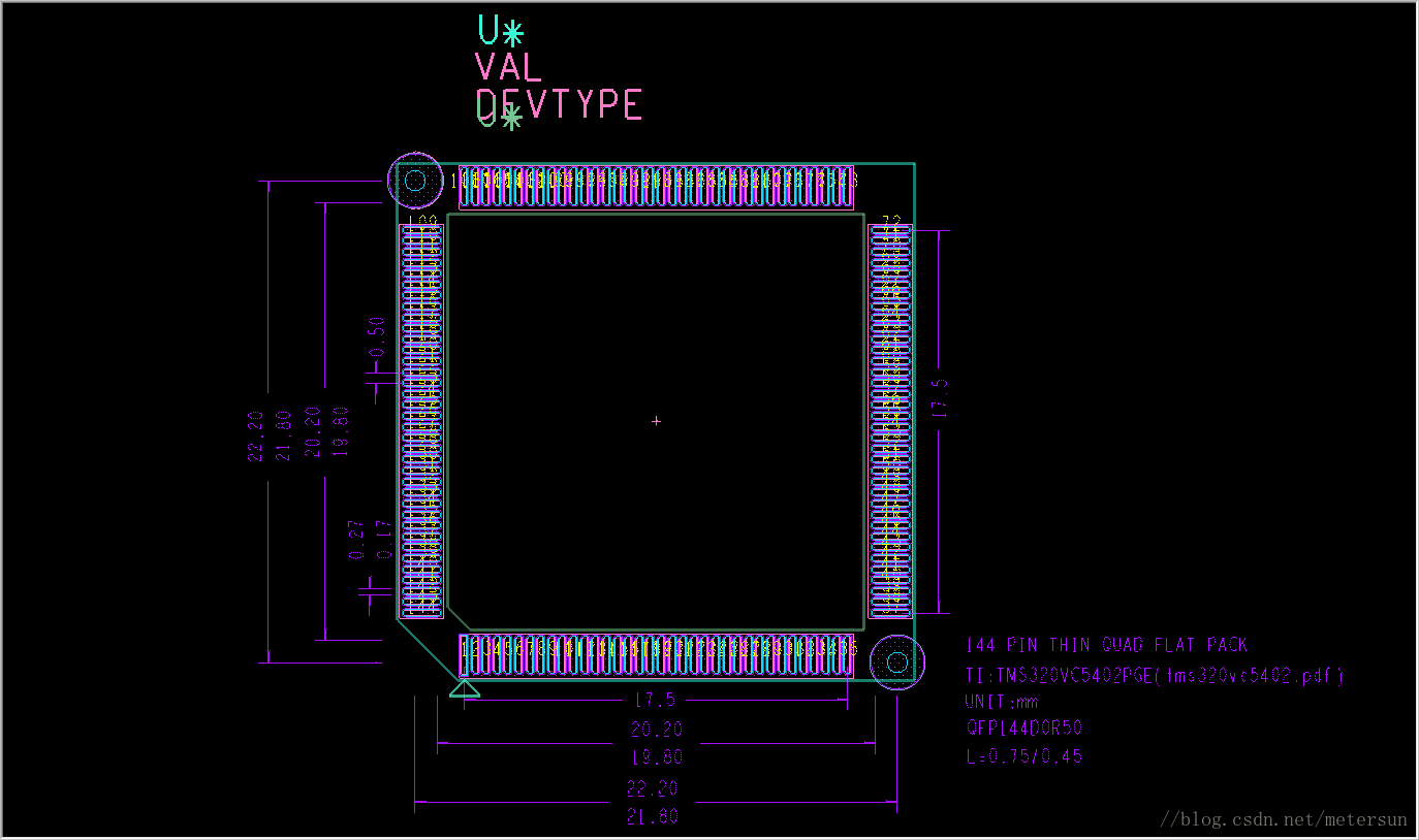 上图中L:0.75/0.45为 引脚 长度,见下图: