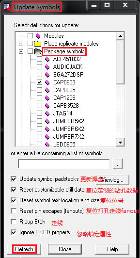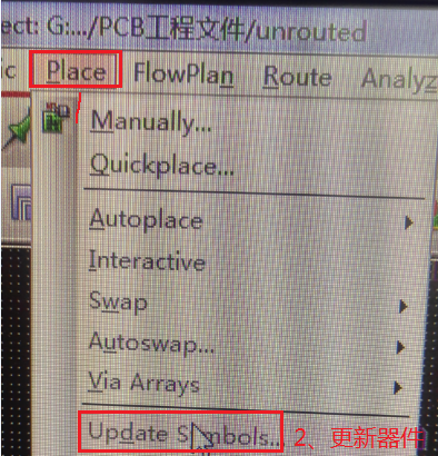 (1)整板元件封装更新:如前述“四、布局命令的使用之9、封装替换与焊盘更新之2)器件更新:Update Symbols”