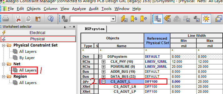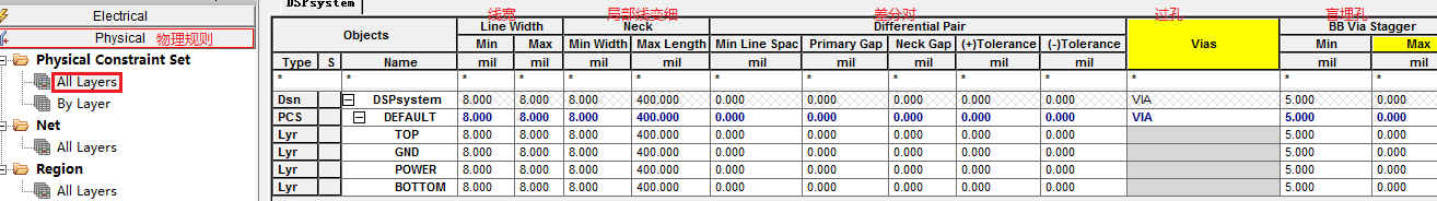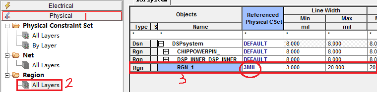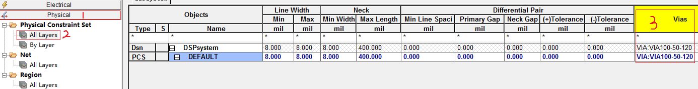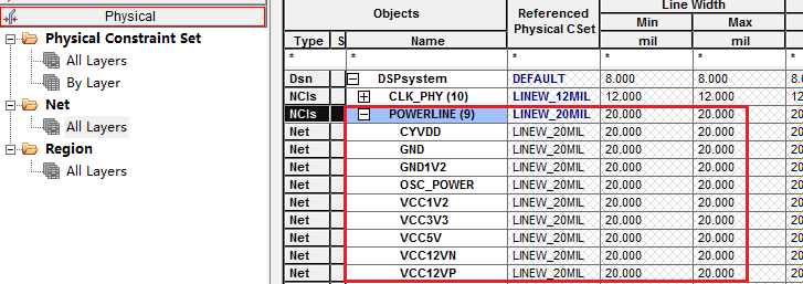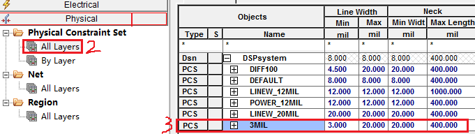 1)线宽规则设置(Physlcal Constraint Set)