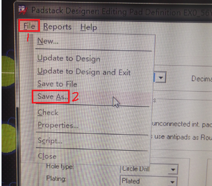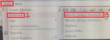 (2)Tools/Padstack/Modify Design Padstack