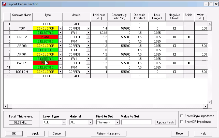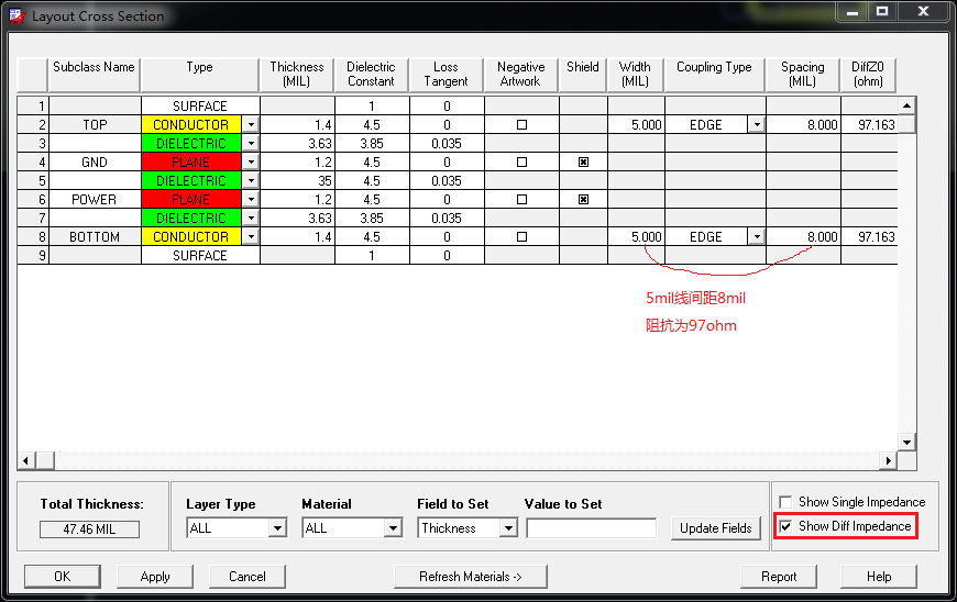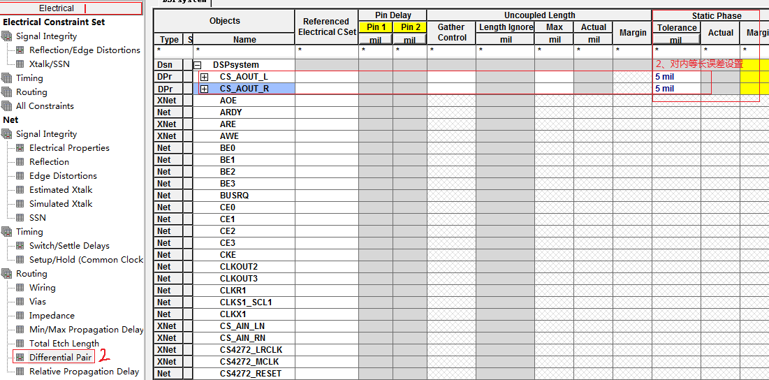 “物理规则设置之All Layers”中创建差分对