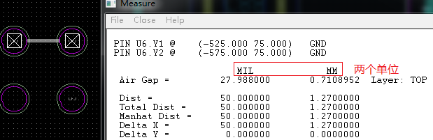 ,如前述“CadenceAllegro16.6绘图软件使用一之(4)选择焊盘Layout/Pins”,测量焊盘到焊盘的间距。
