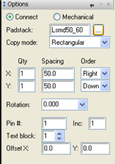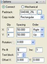 可以选择批量放置焊盘,options中设置如下图左所示,放置完后如下图右所示。