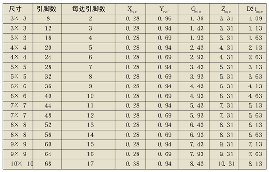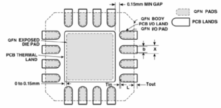 | 典型的QFN元件I/O焊端尺寸(mm) | 典型的PCB I/O焊盘设计指南(mm) | ||||