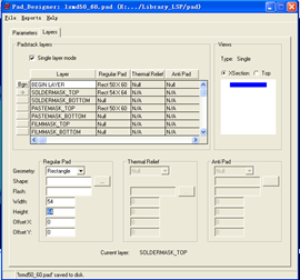 由于还需要一个正方形的焊盘,命名为pad48sq32d.pad,其设置如下图所示。
