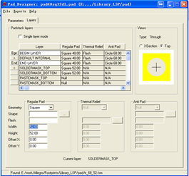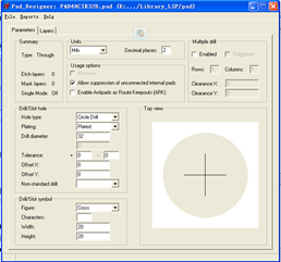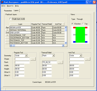 热风焊盘制作完成后,可以进行通孔焊盘的制作。使用的工具为Pad_Designer。步骤如下: