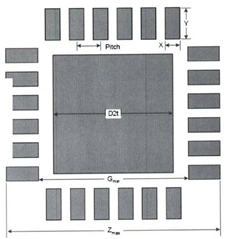 | 焊盘间距 | 焊盘宽度(b) | 焊盘长度(L) | 焊盘宽度(X) | 外延(Tout) | 内延(Tin) |