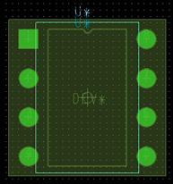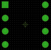 通孔焊盘设计过程与3.1节类似,区别在于对于通孔IC,一般会用一个特殊形状的通孔来表示第一脚,这里第一脚的焊盘用正方形,其他为圆形。