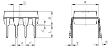 本文档以一个DIP8封装为例来进行说明。DIP封装的尺寸如下图所示。