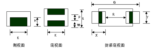 其中,K为元件引脚宽度,H为元件引脚高度,W为引脚长度,P为两引脚之间距离(边距离,非中心距离),L为元件长度。X为焊盘长度,Y为焊盘宽度,R为焊盘间边距离,G为封装总长度。则封装的各尺寸可按下述规则: