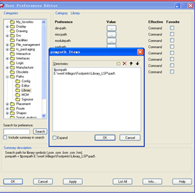 选择合适尺寸的热风焊盘;注意,若热风焊盘存的目录并非安装目录,则需要在PCB Designer中选择Setup->User Preferences中的psmpath中加入适当路径,如下图所示。